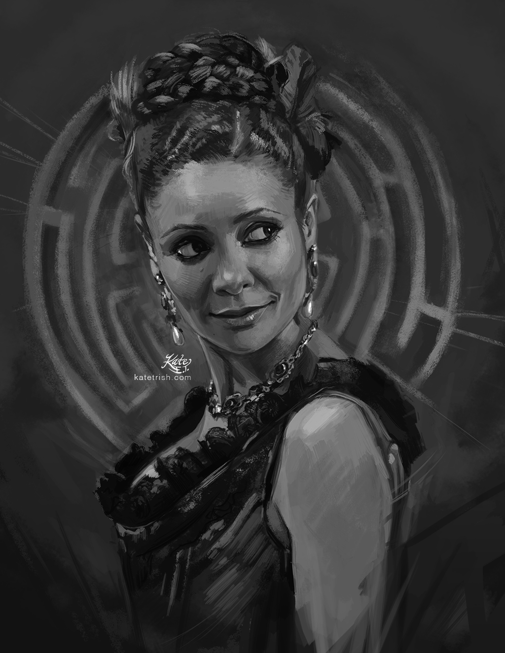 Description: A drawing of a woman with a braid in her hair and a necklace on her neck.