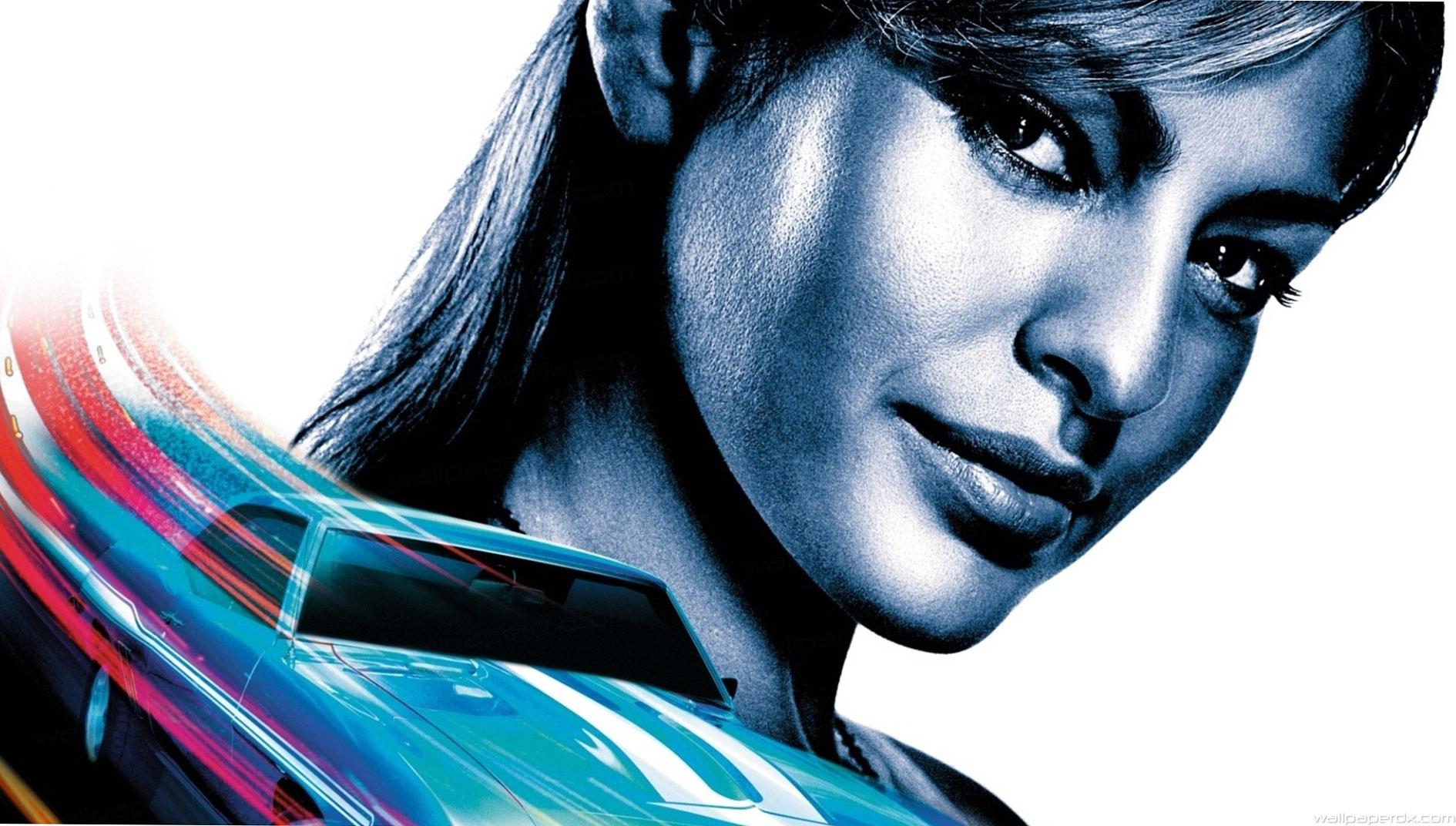 Description: A woman with a car in the background with a blurry image of a car in the foreground.
