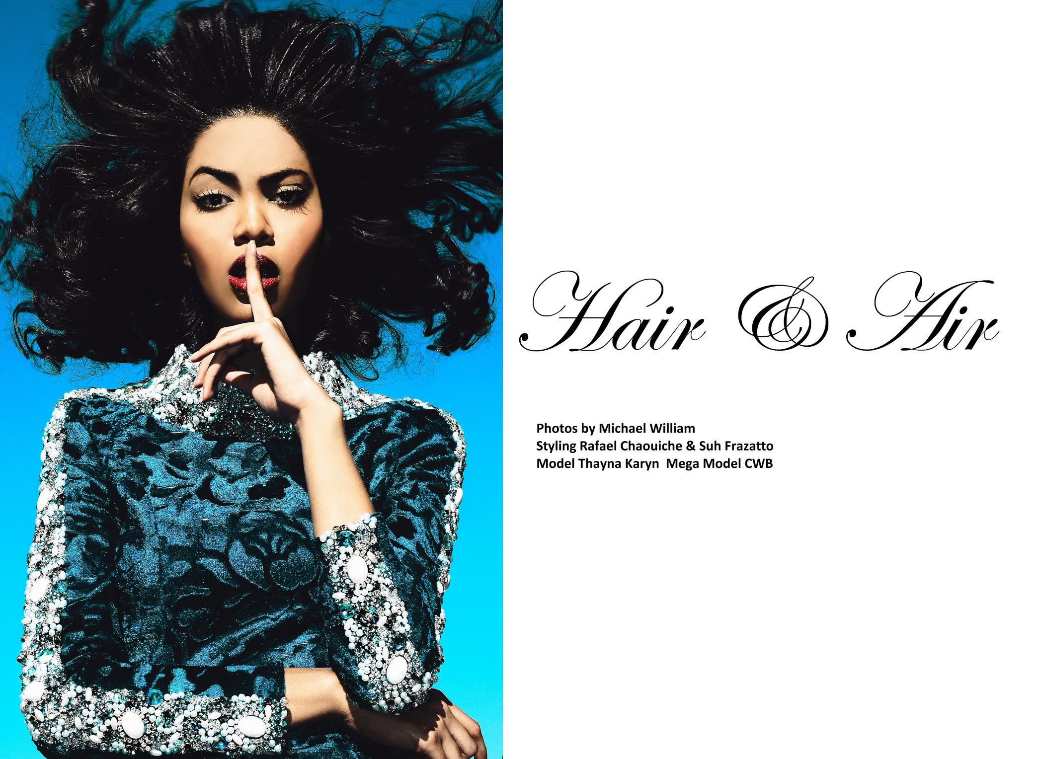 Description: A woman with a cigarette in her mouth and a hair and nail advertisement in the background with a blue sky.