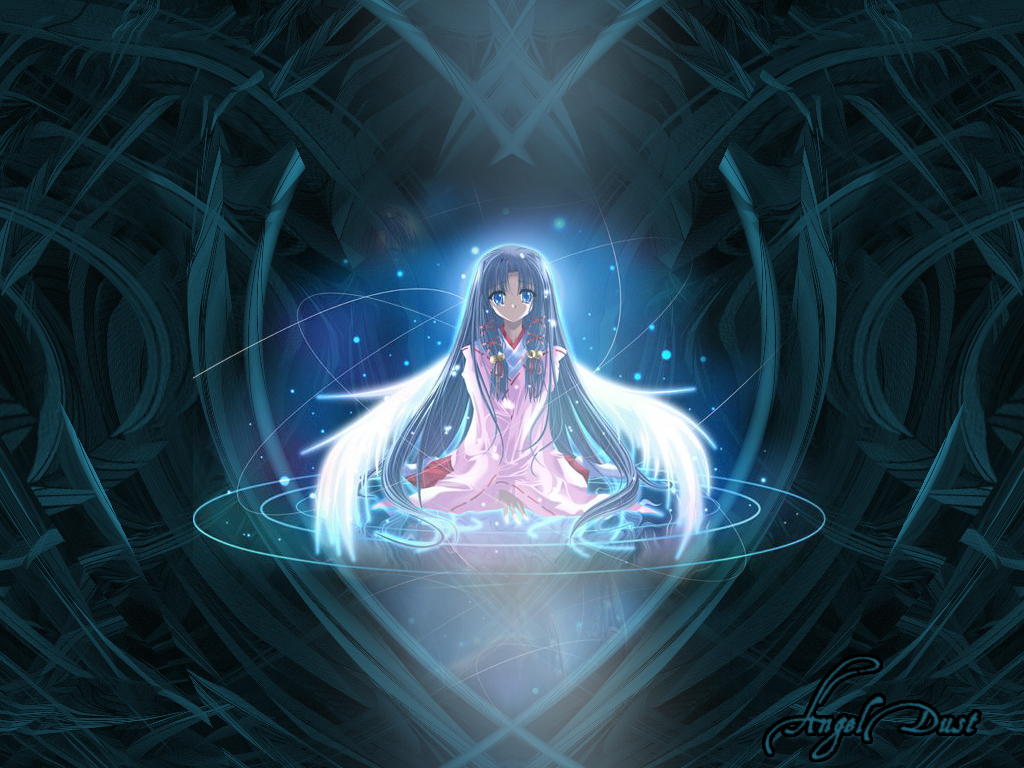 Description: A woman sitting in a circle with her hands in her pockets and a glowing light shining through her hair.