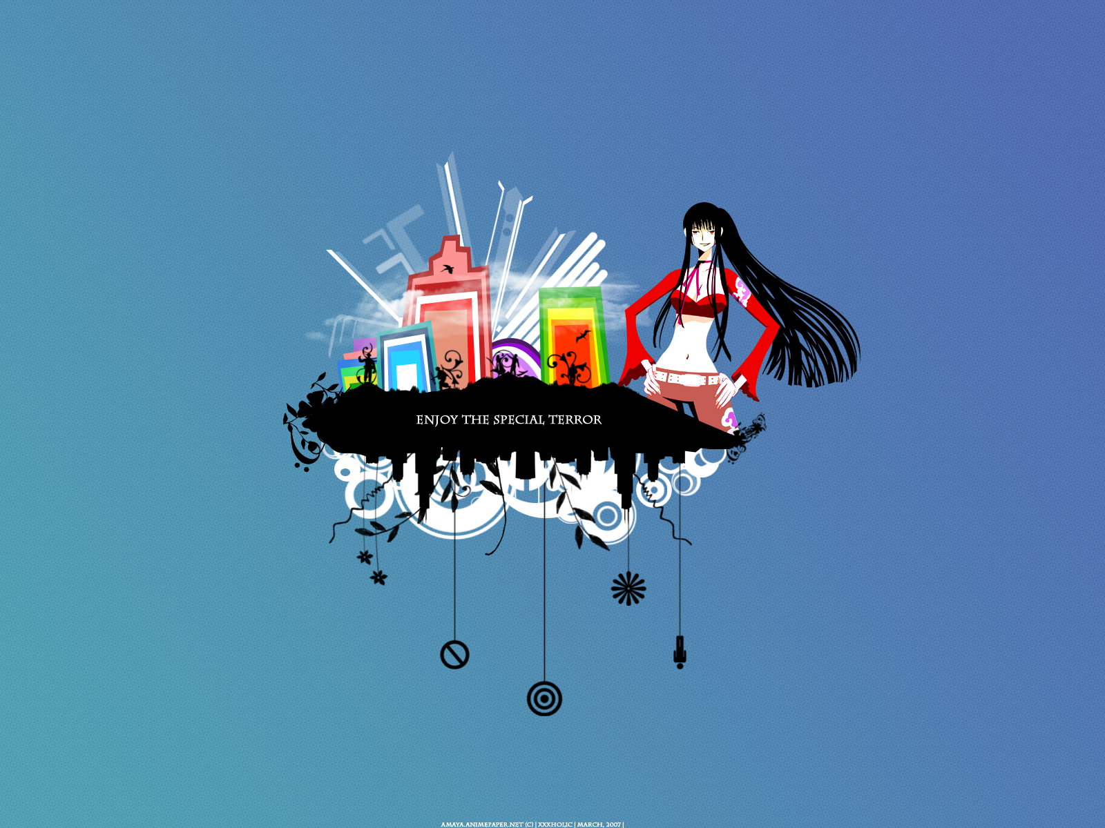 Description: A woman is standing on top of a clock with a city in the background and a sky background with a clock tower.