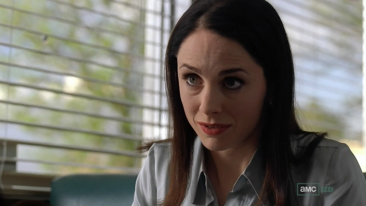 Description: A woman with a concerned look on her face sitting in a chair in front of a window with blinds.