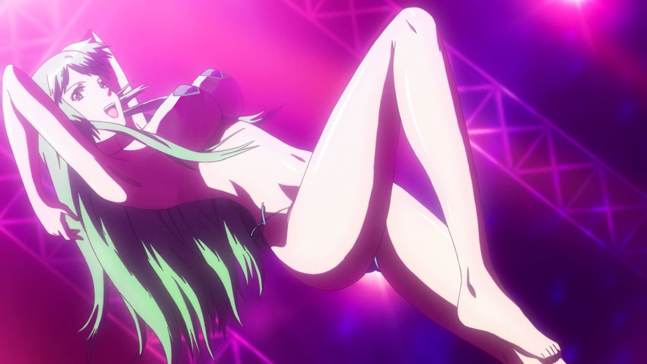 Description: A woman in a short dress is dancing on stage with her legs spread out and her legs spread out.