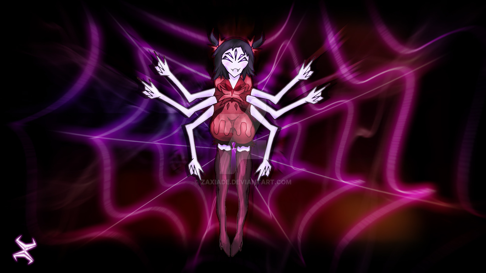 Description: A woman with a demon like body and demon horns on her head.