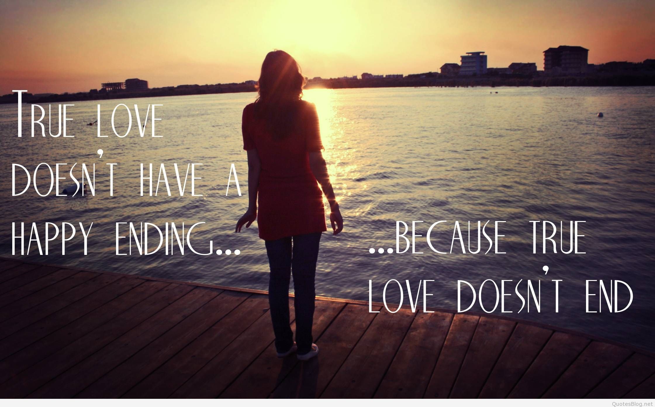 Description: A woman standing on a dock with a sunset in the background and a quote from a book about love.