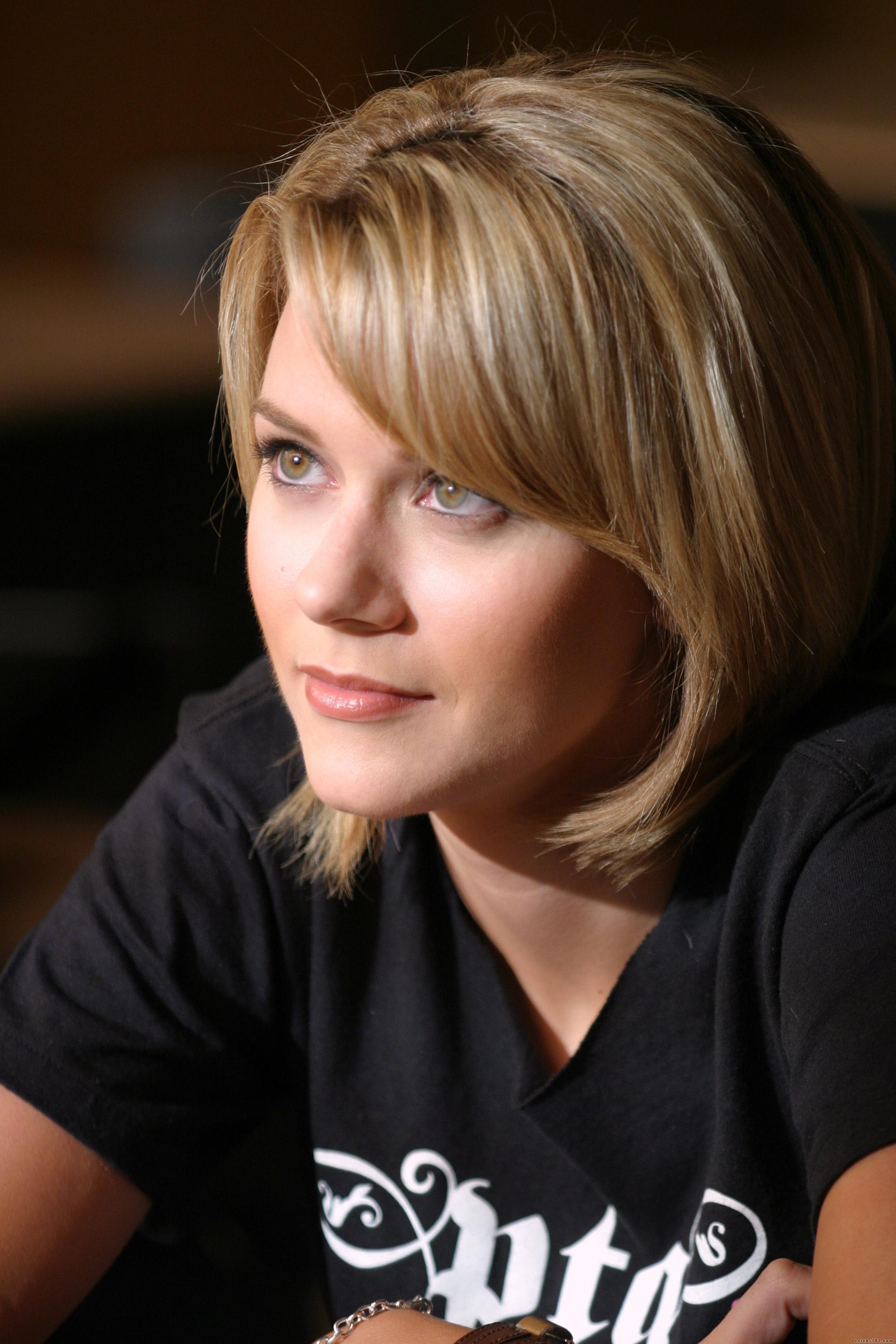 Description: A woman with a black shirt and a brown and white dog in her lap and a black and white dog in her lap.