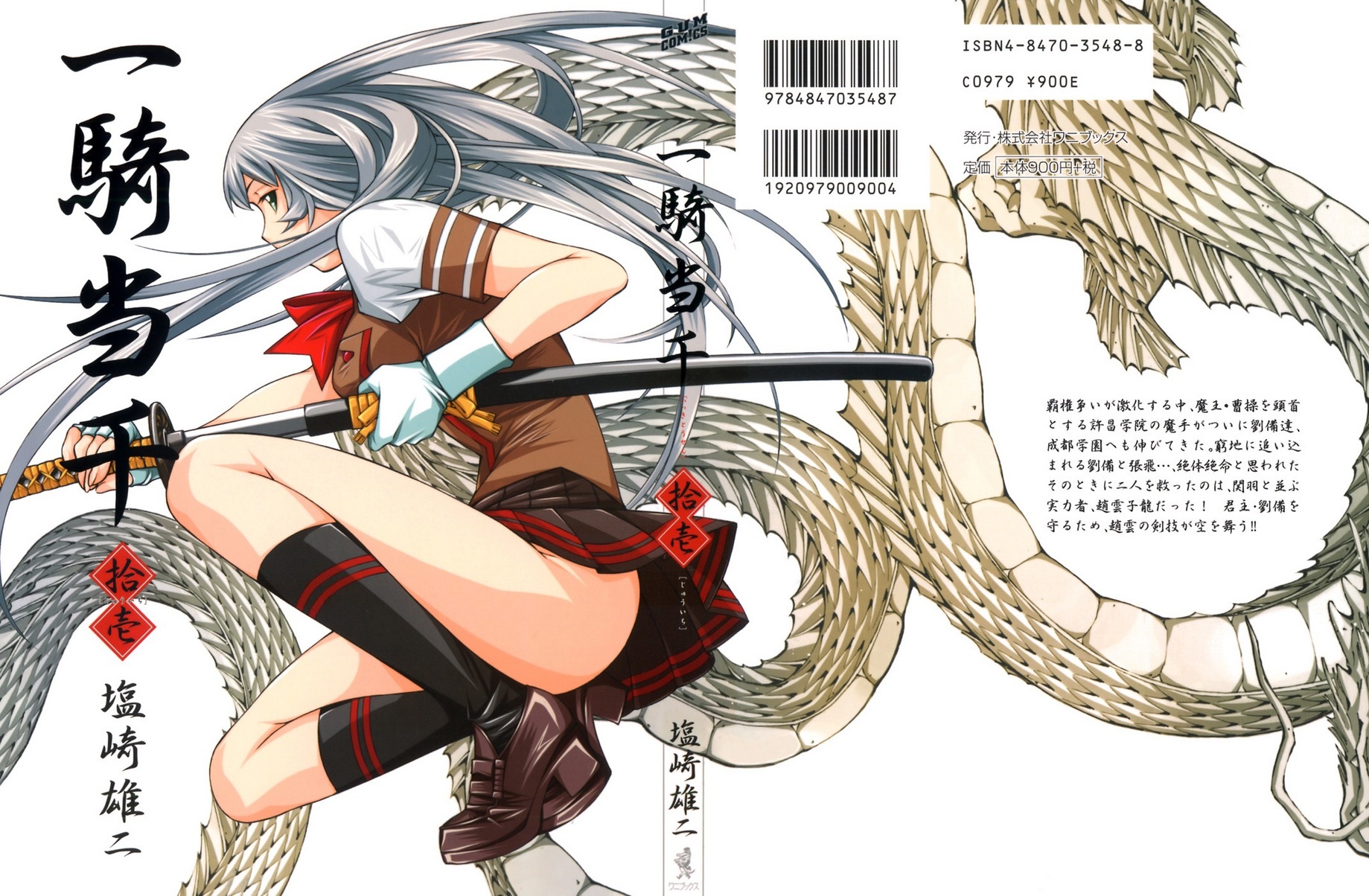 Description: A woman with a sword and a dragon behind her is in a graphic style with asian writing on it.