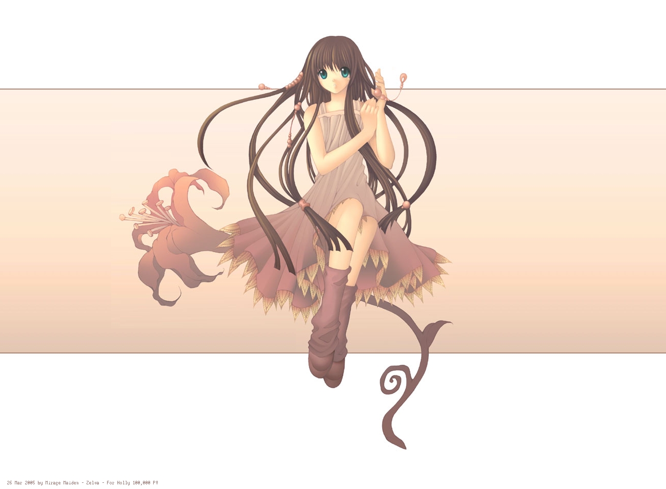 Description: A woman with long hair sitting on a dragon tail with her hands in her pockets and her legs crossed.