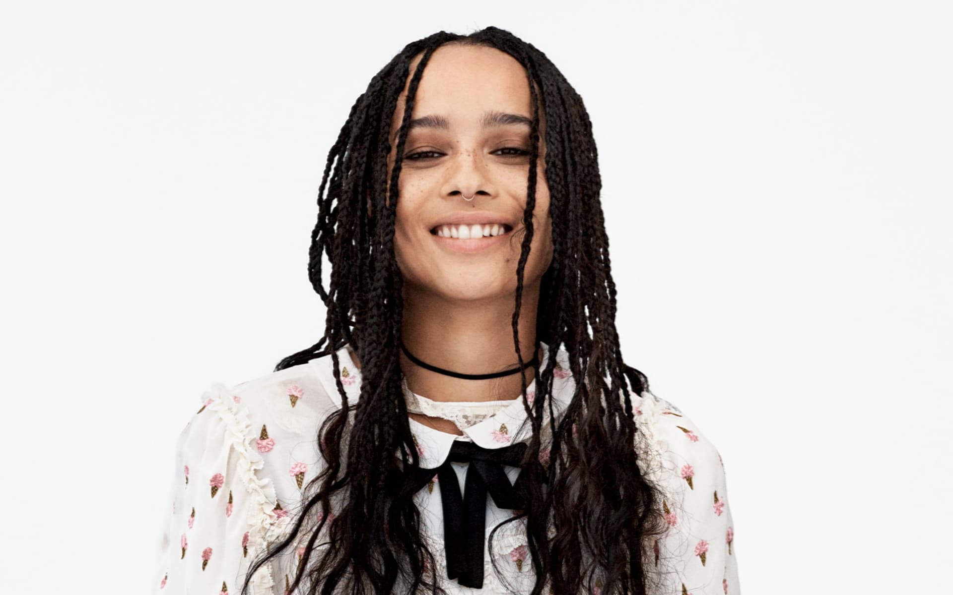 Description: A woman with long dreadlocks and a white shirt smiling at the camera with a white background behind her.