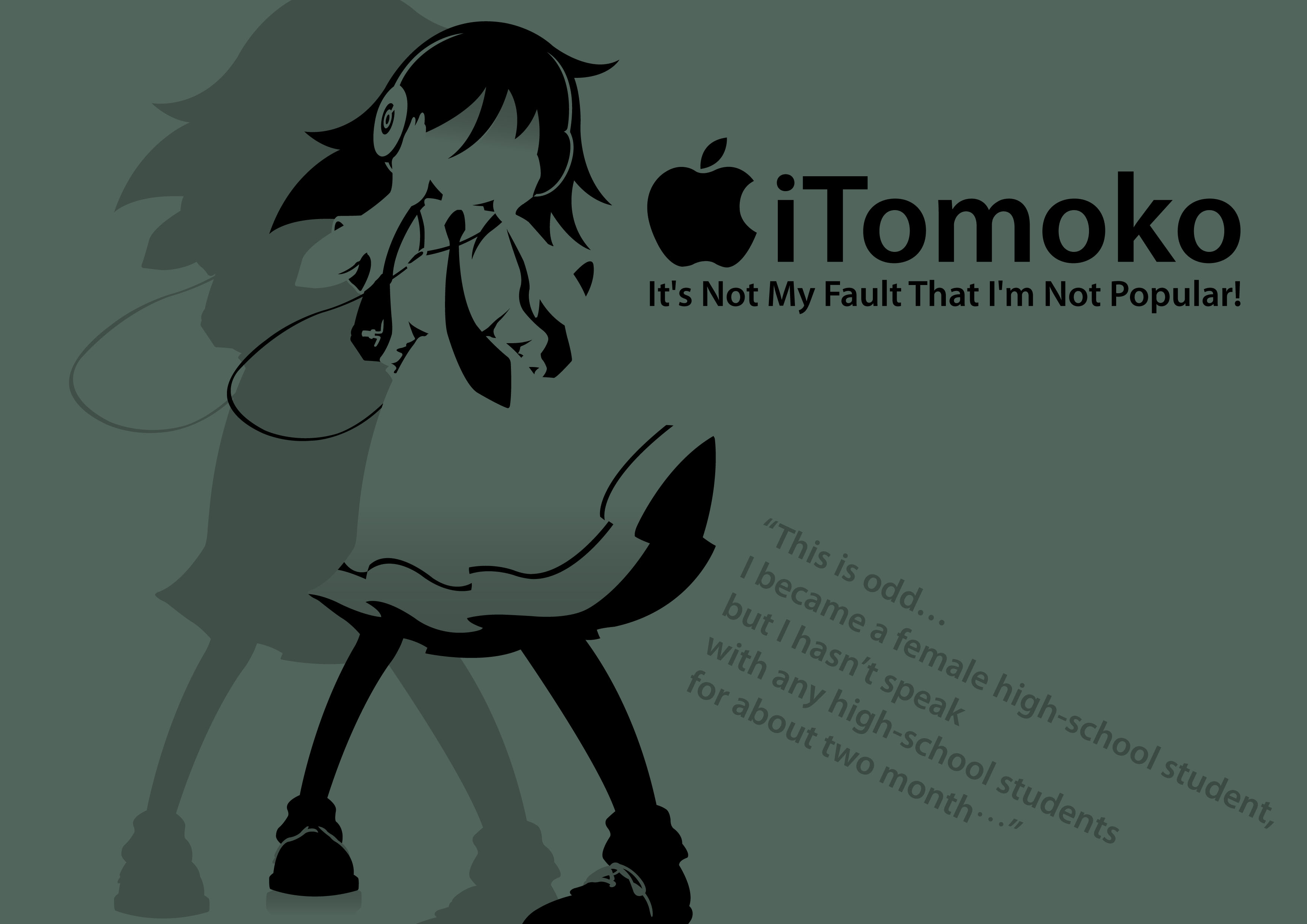 Description: A woman in a dress with an apple logo on her back and the words it's not fault that i'm not popular.