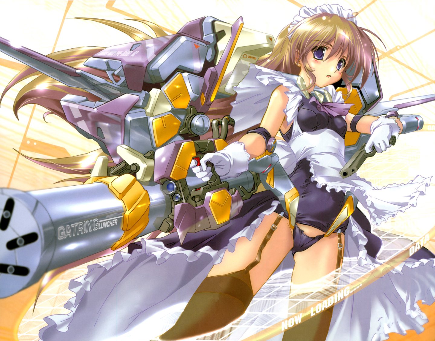 Description: A woman in a dress holding a gun and a gun in her hand.