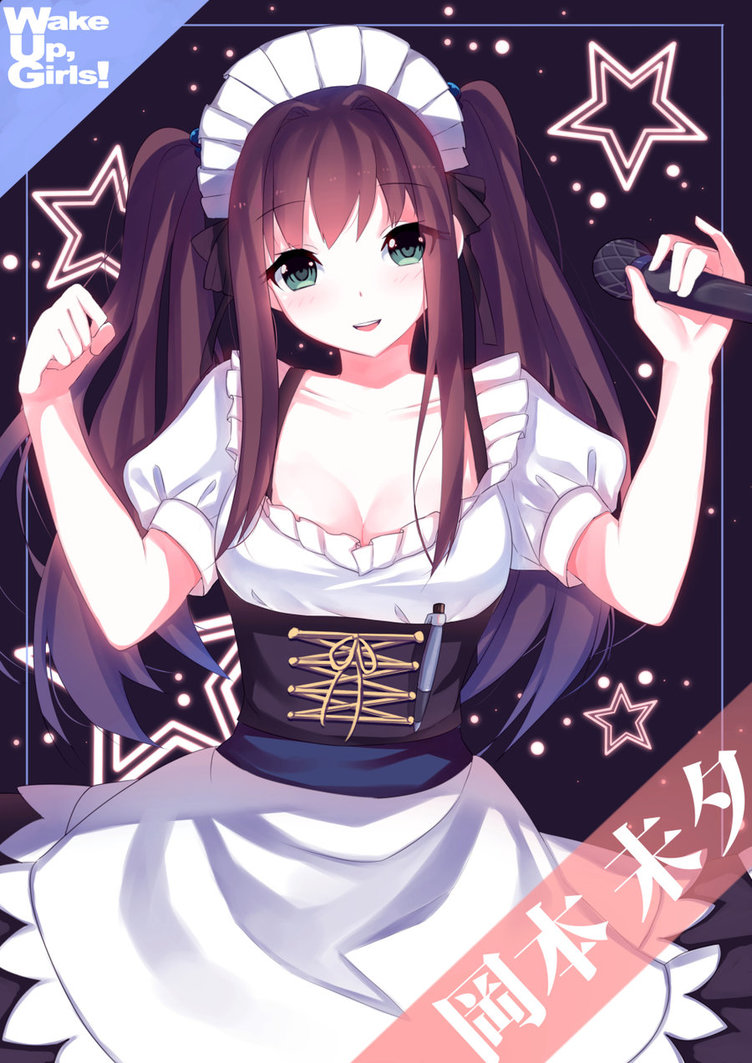 Description: A woman in a dress holding a microphone in her hand and a star background behind her is a sign that says who girl.