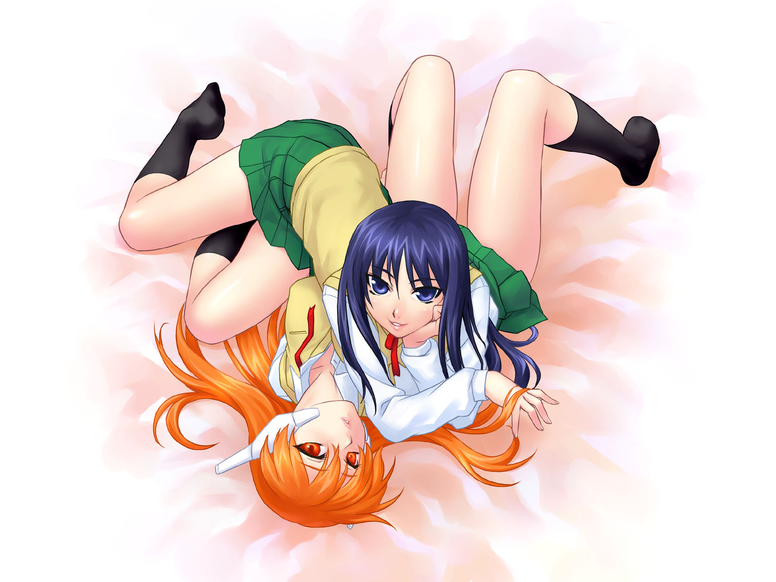 Description: A woman laying on the ground with a fish in her hand and a man in a suit on her back.