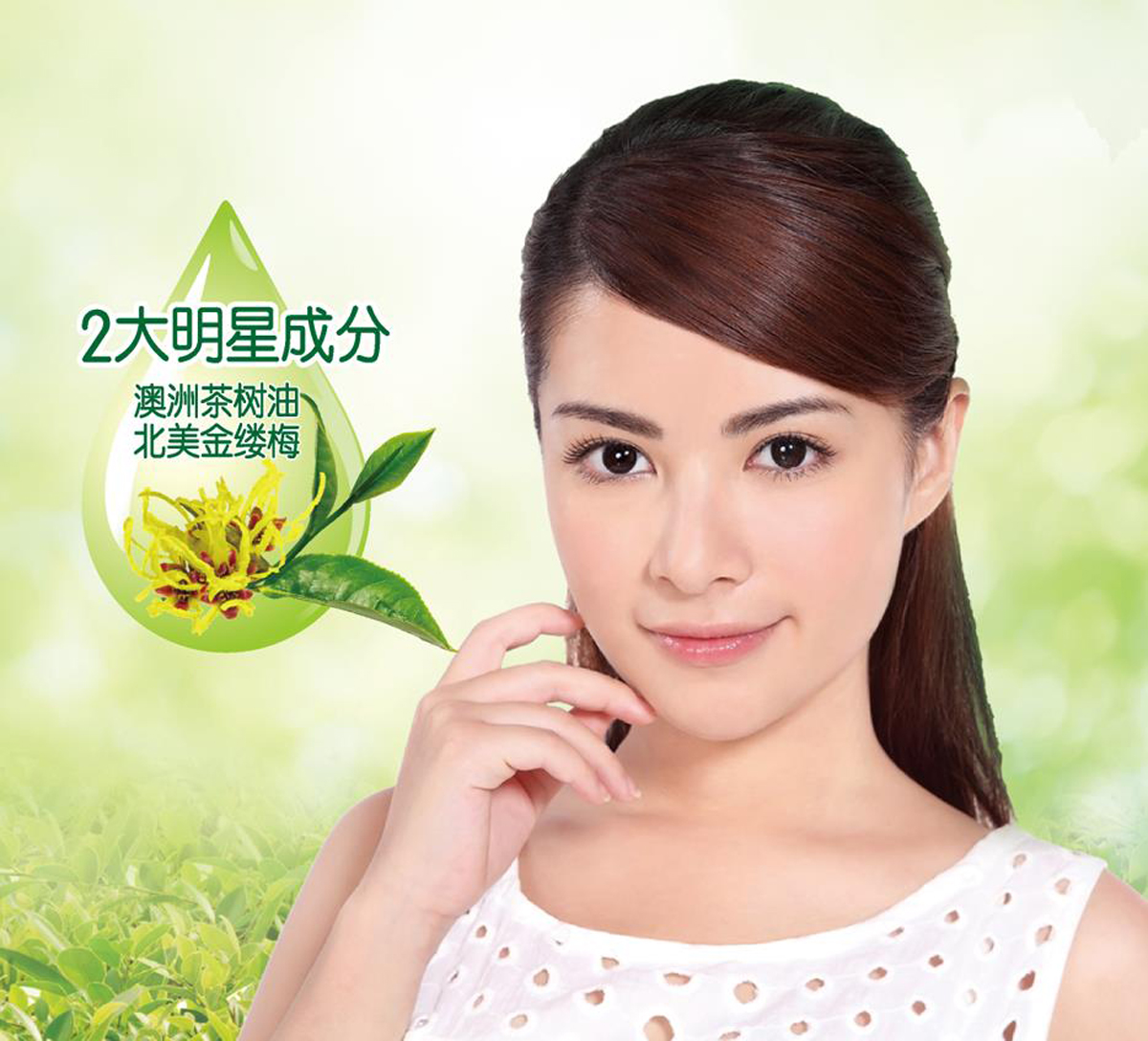 Description: A woman with a flower in her hand and a green leaf in her hand with a green background and a green leaf in the foreground.