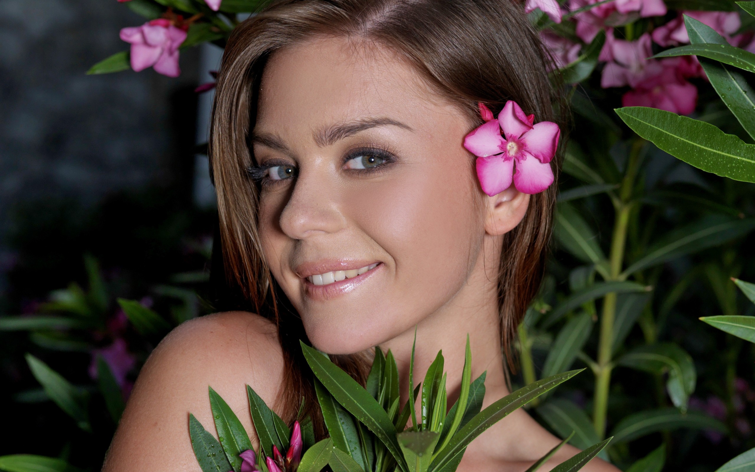 Description: A woman with a flower in her hair and a flower in her hair.