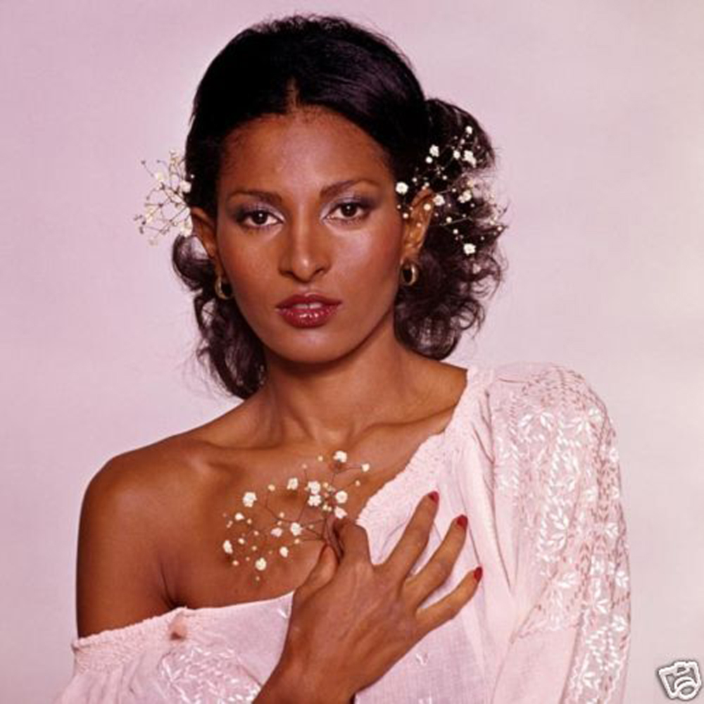 Description: A woman with a flower in her hair and a white dress on her shoulders and a flower in her hair.