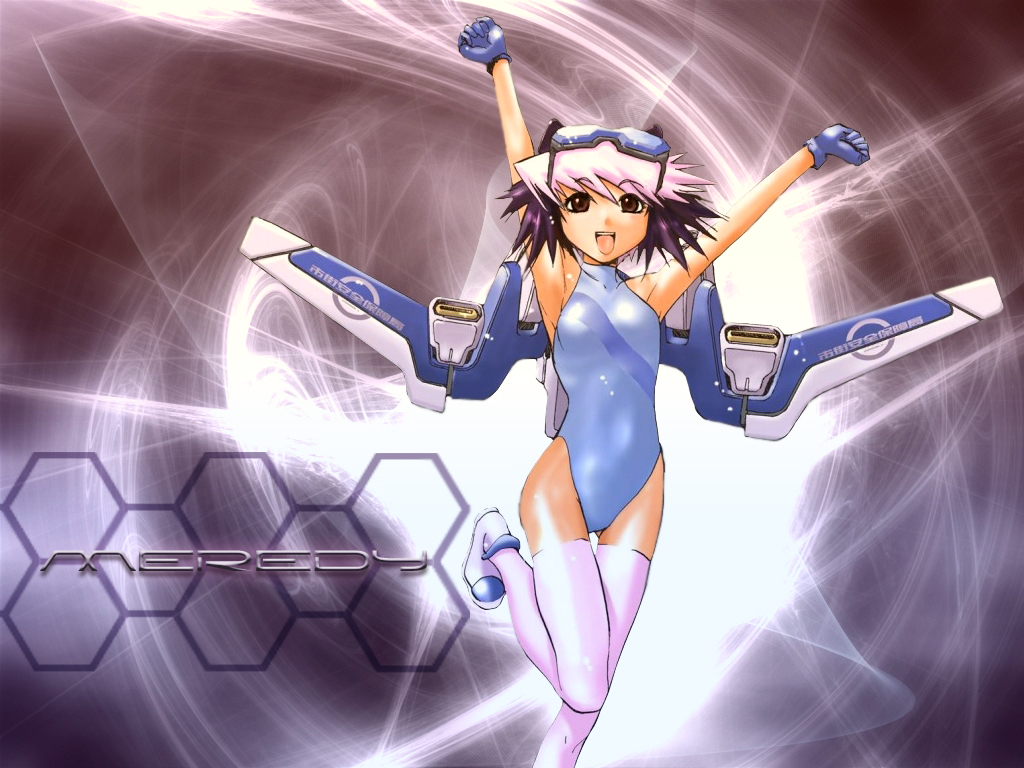 Description: A woman in a blue and white outfit is flying through the air with her arms outstretched and legs spread wide.