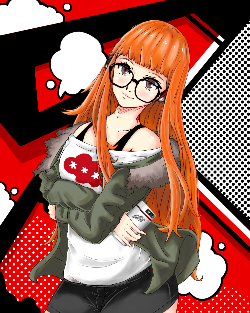 Description: A woman with glasses and a jacket on holding a cell phone in her hand and a thought bubble above her head.