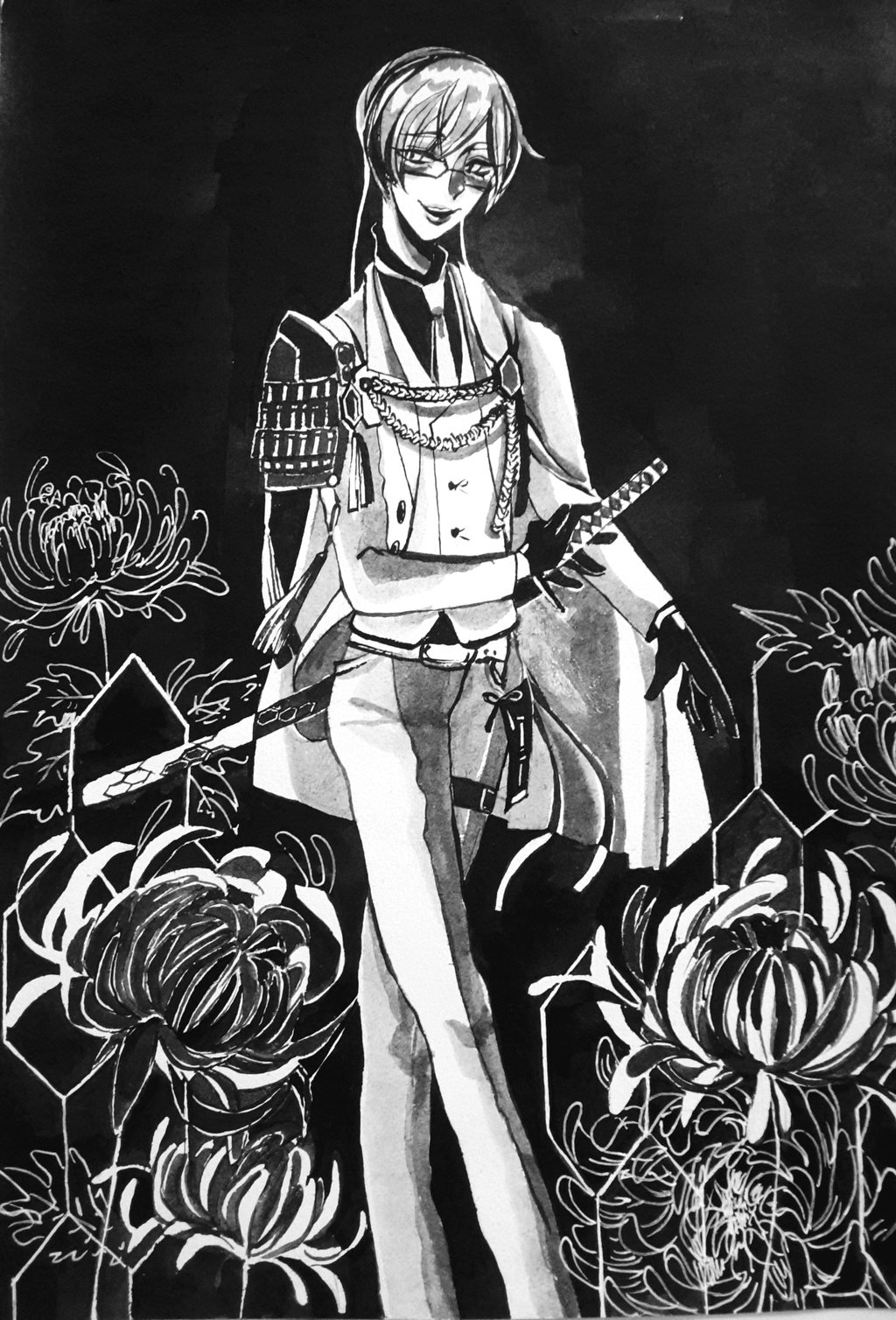 Description: A drawing of a woman with a guitar in her hand and flowers in the background.