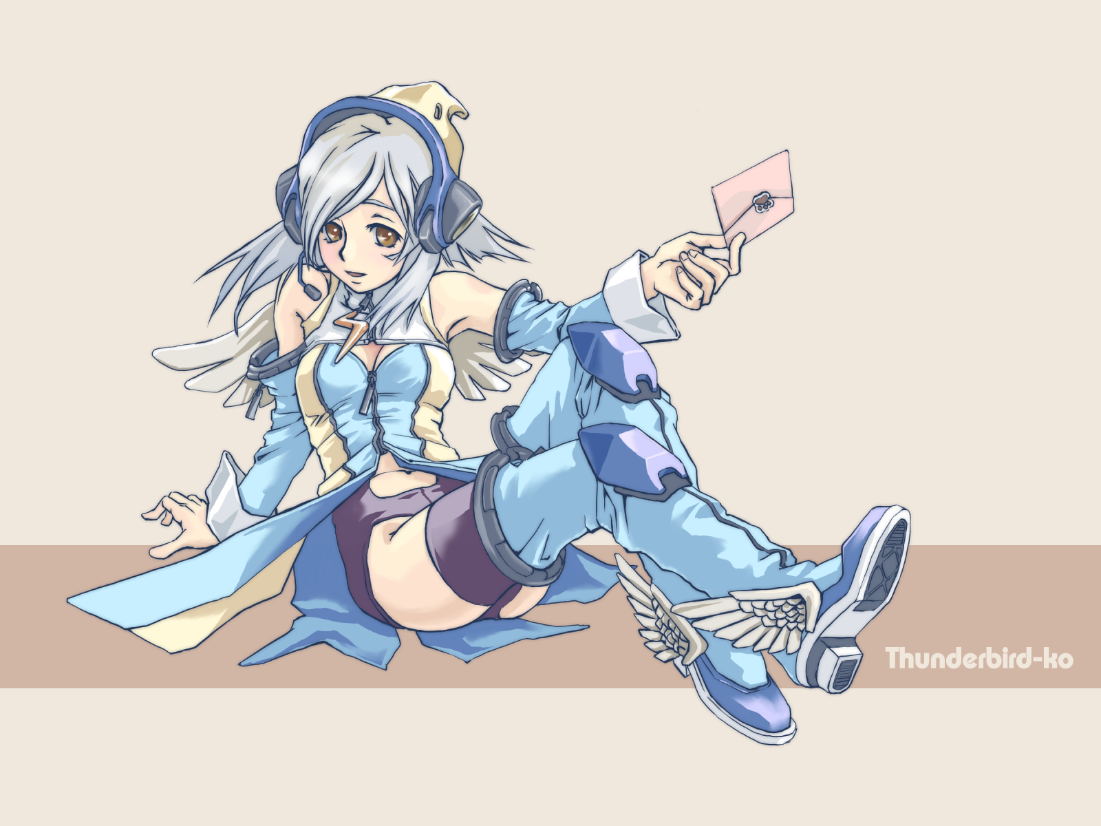 Description: A drawing of a woman with a gun and a girl with a hat on her head and a cell phone in her hand.
