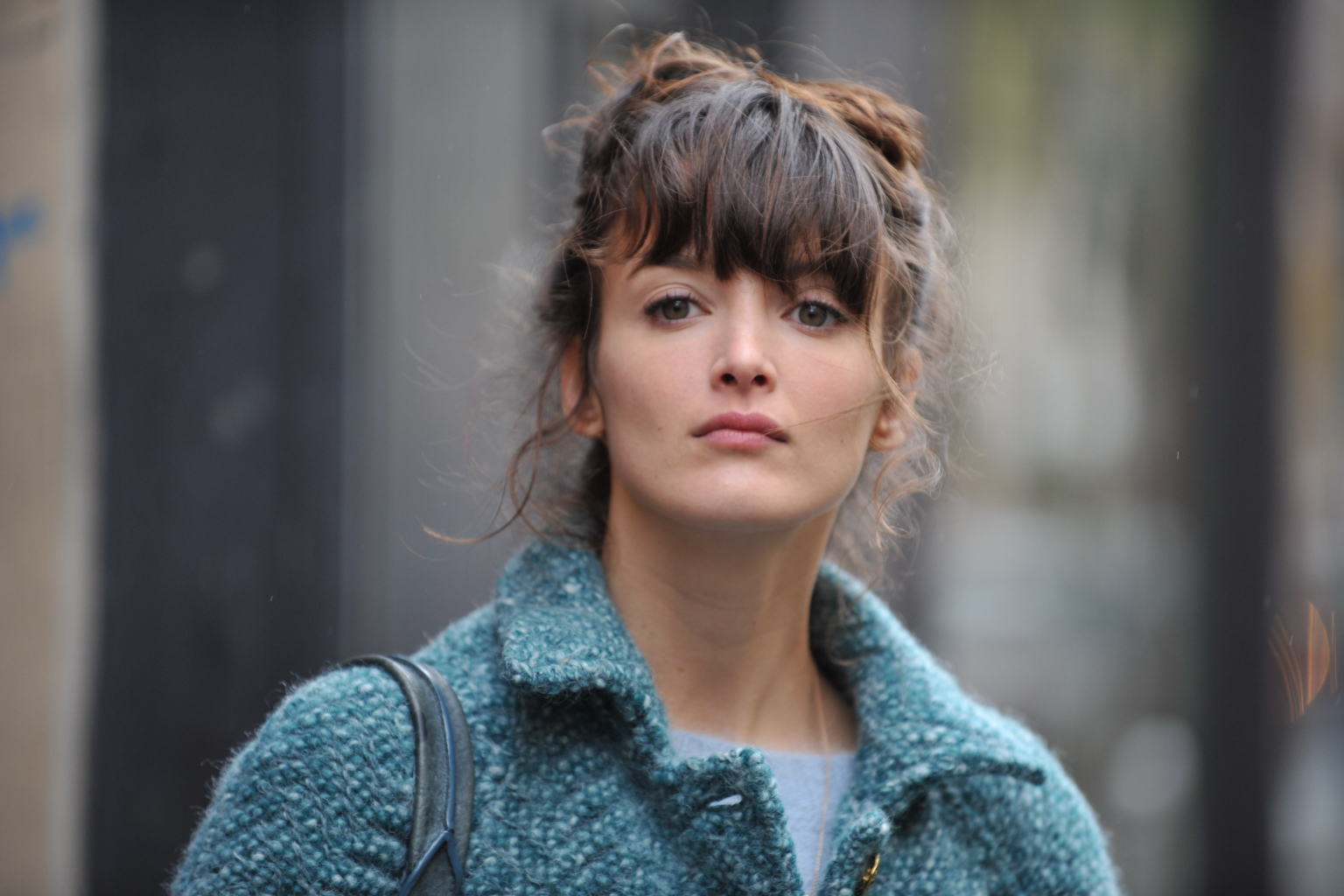 Description: A woman with a handbag is walking down the street with a handbag on her shoulder and a serious look on her face.