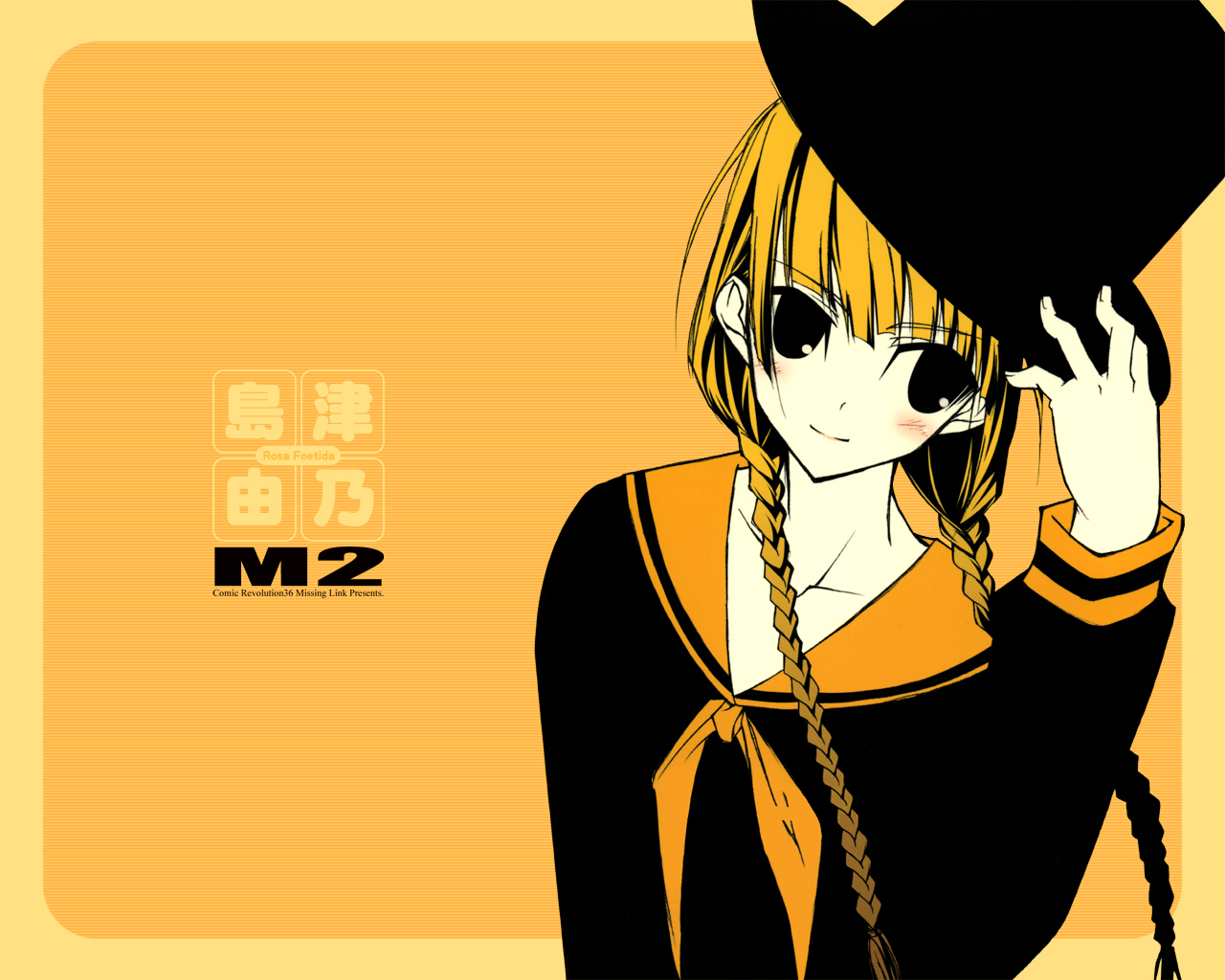 Description: A woman with a hat and a black dress and a yellow background with a message in the middle of the image.