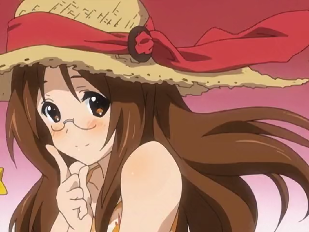Description: A woman with a hat on her head and a star on her head is looking at the camera and smiling.