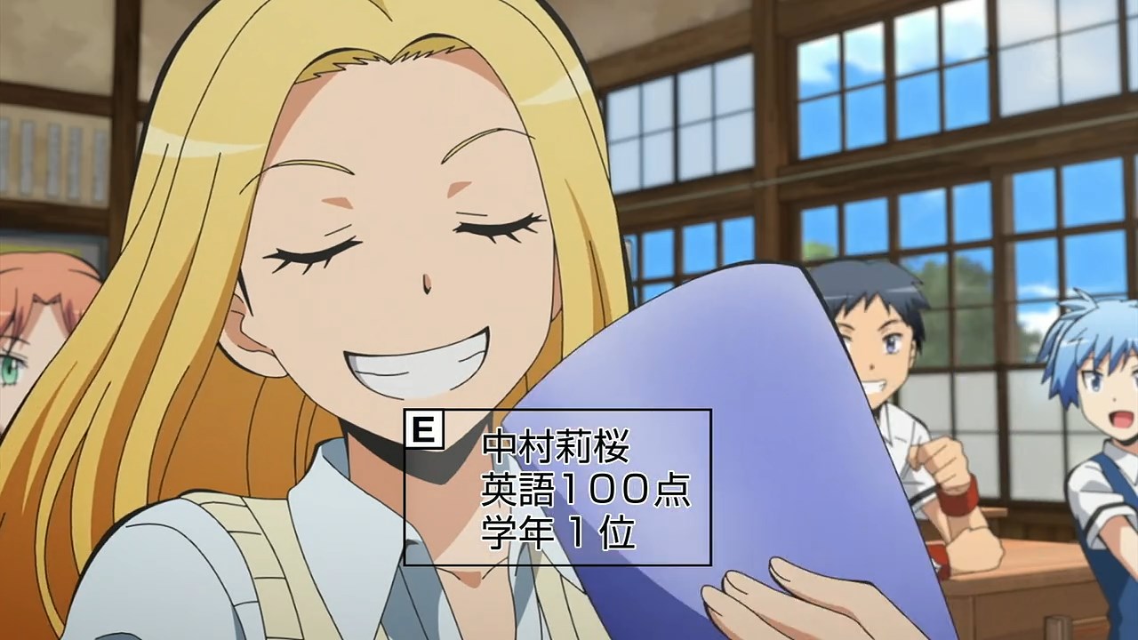 Description: A woman holding a blue object in front of a group of people in a room with windows and windows.