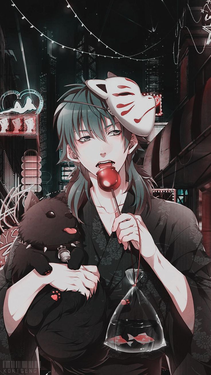 Description: A woman holding a cat and a glass bowl with a liquid inside of it.
