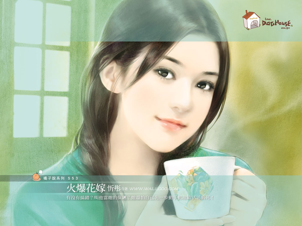 Description: A woman holding a cup in her hands with a green background and a window behind her.