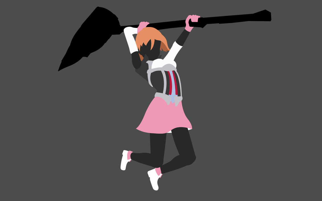 Description: A woman holding an umbrella in the air with her hands behind her head and a black umbrella in the other hand.