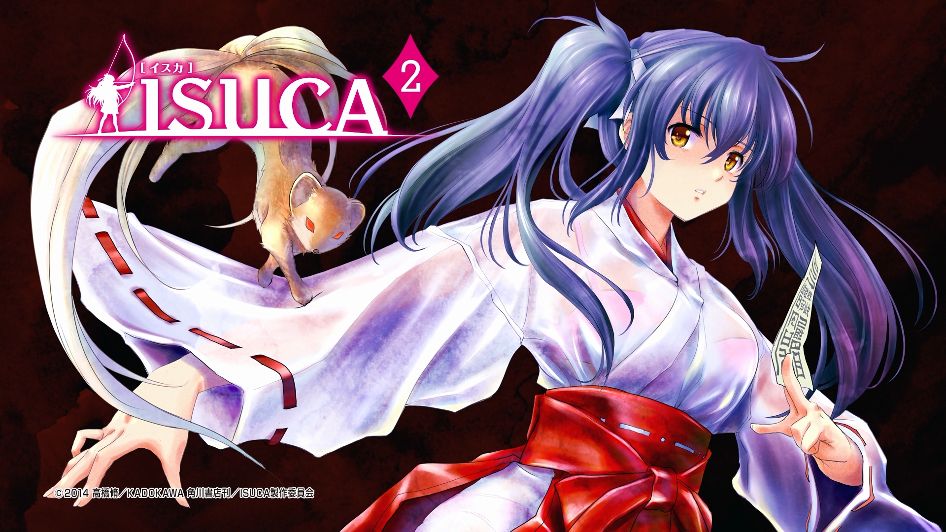 Description: A woman in a kimono holding a knife and a sword in her hand with the word misica on it.