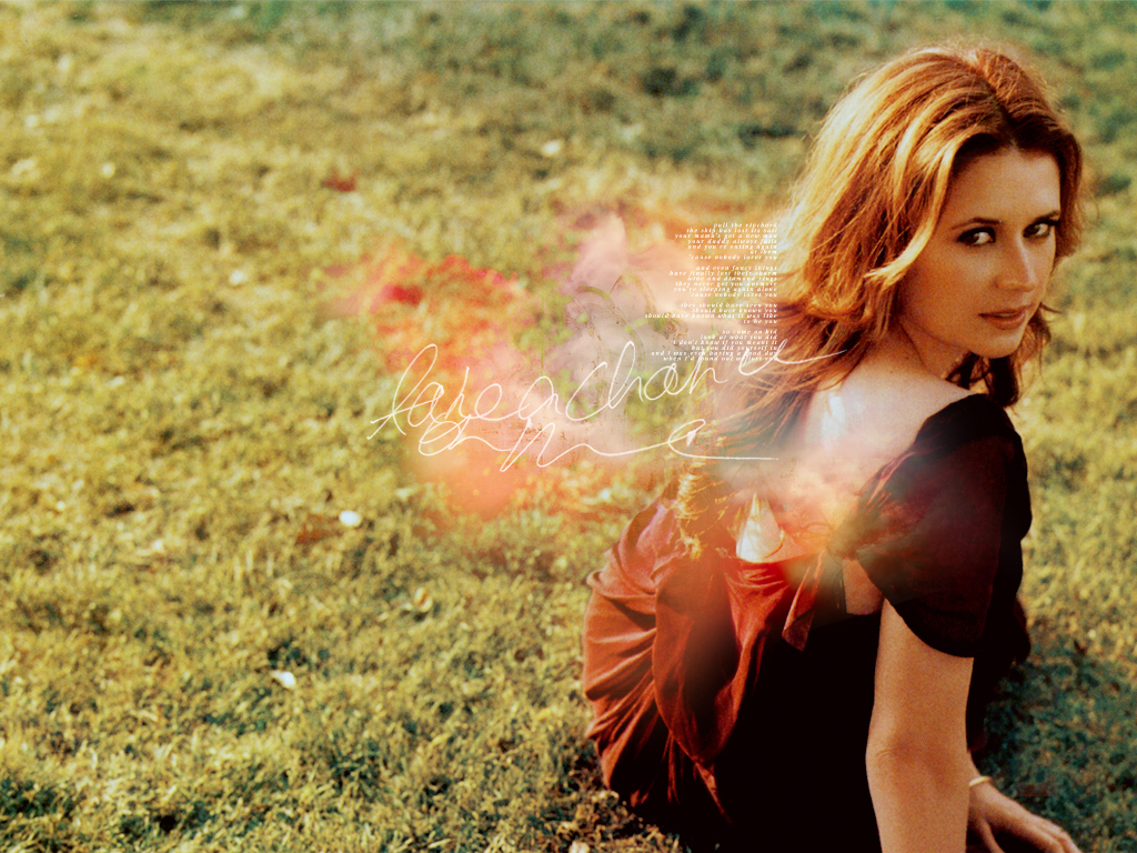 Description: A woman laying on the ground in a field of grass with a blurry background of flowers and a message.