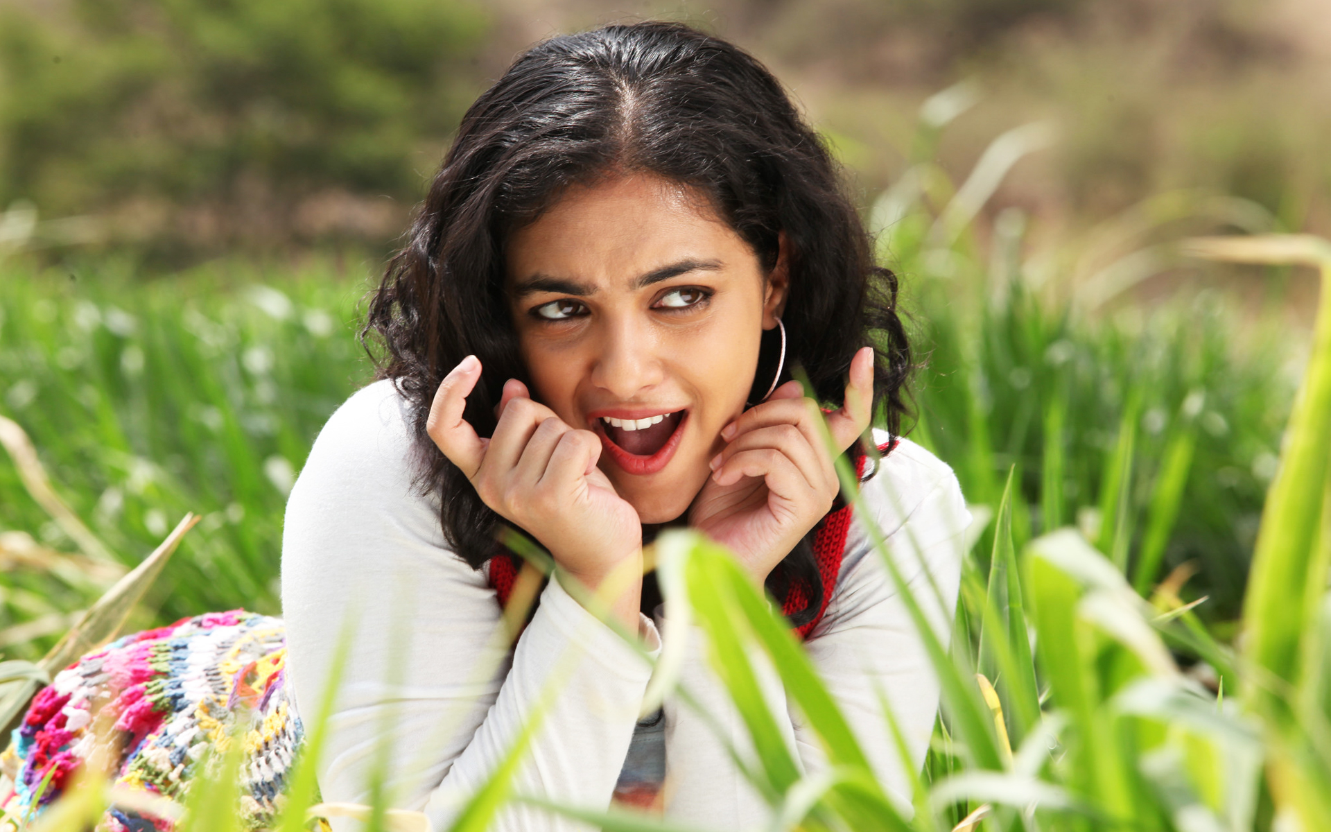 Description: A woman laying in the grass with her hands on her face and looking at the camera with a smile.