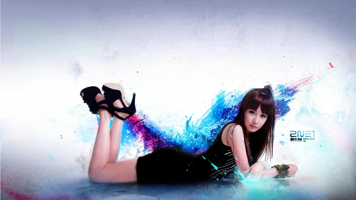 Description: A woman laying on the ground with a pair of shoes on her feet and a splash of paint behind her.