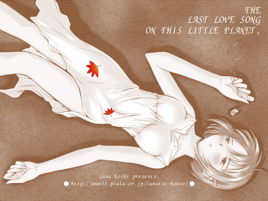 Description: A woman laying on her stomach with a leaf on her chest and a caption that reads.