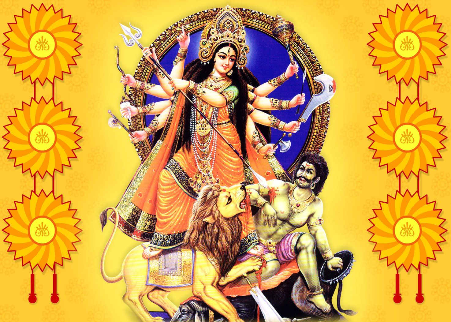 Description: A painting of a woman sitting on a lion surrounded by other animals and people in a circle with sun rays.