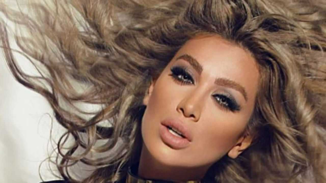 Description: A woman with long hair and a choker on her neck is posing for a picture with her hair blowing in the wind.