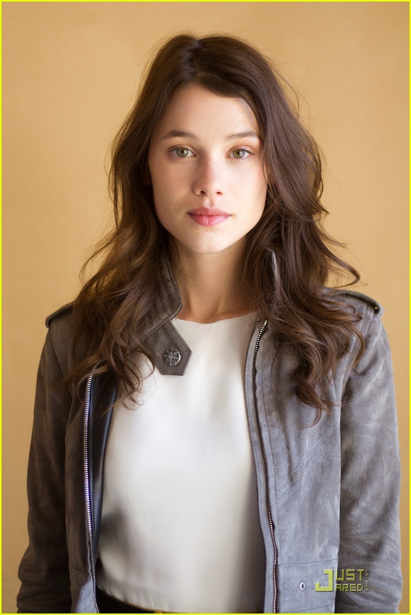 Description: A woman with long hair and a jacket on posing for a picture with a yellow background and a brown wall.
