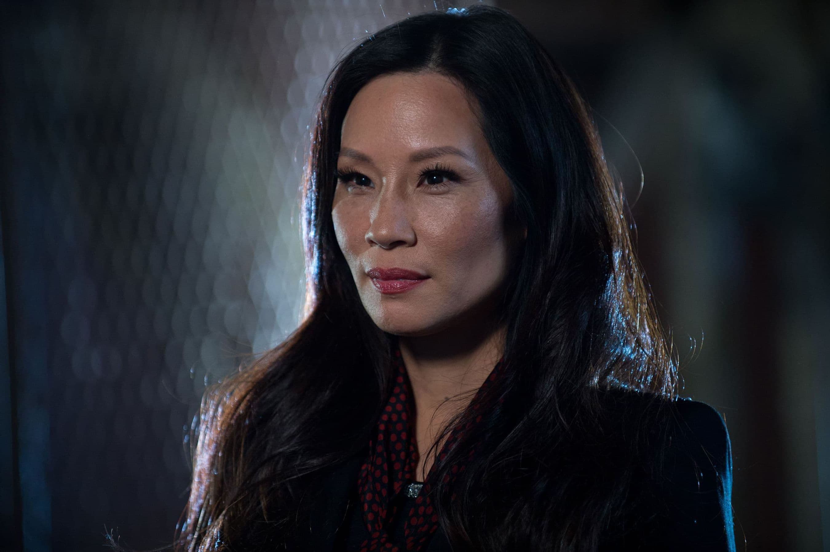 Description: A woman with long hair and a red shirt is looking at the camera with a serious look on her face.