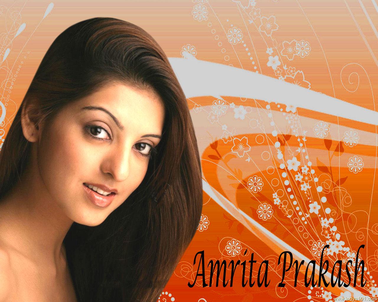 Description: A woman with long hair and a smile on her face with a floral background behind her and the words amarita praksh.