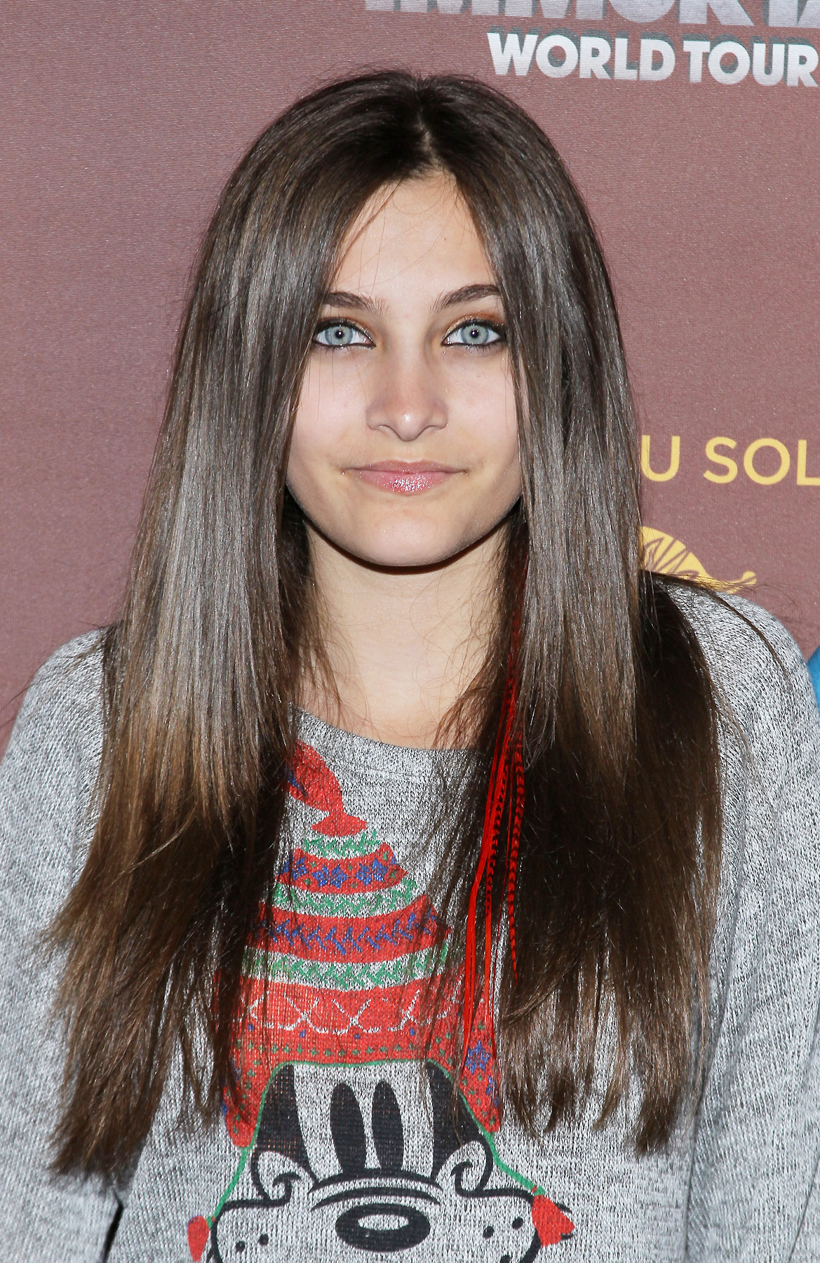 Description: A woman with long hair and a sweater on posing for a picture in front of a wall with a logo.
