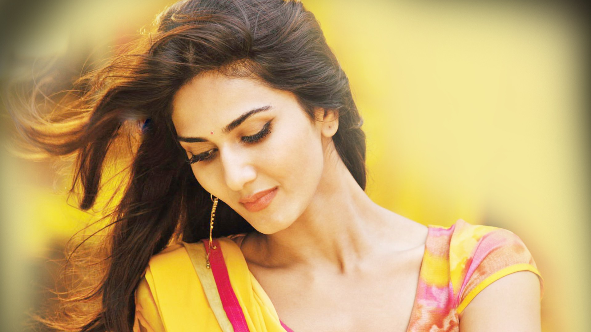Description: A woman with long hair and a yellow shirt is looking down at her cell phone and smiling at the camera.
