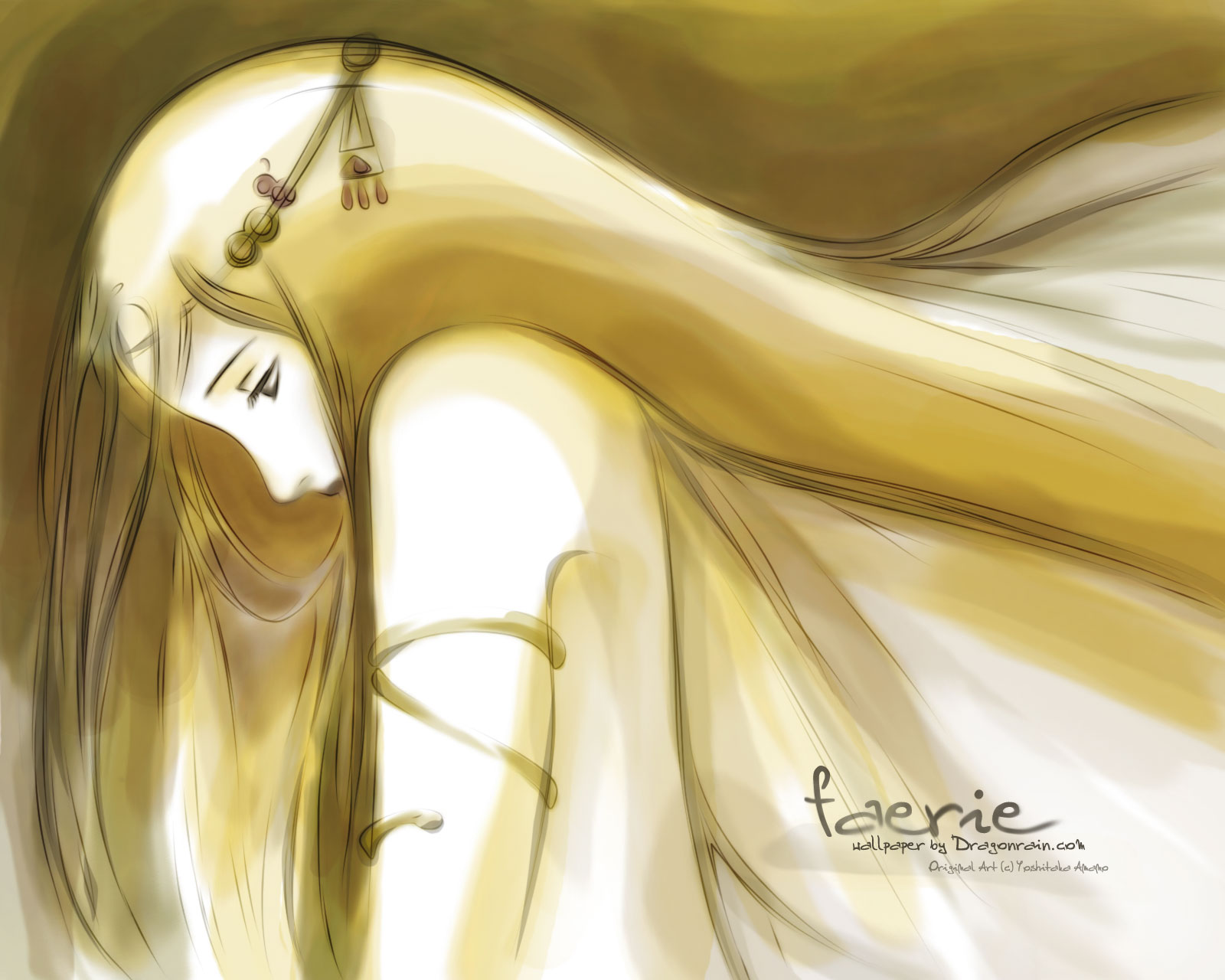 Description: A digital painting of a woman with long hair and a necklace on her neck and head.