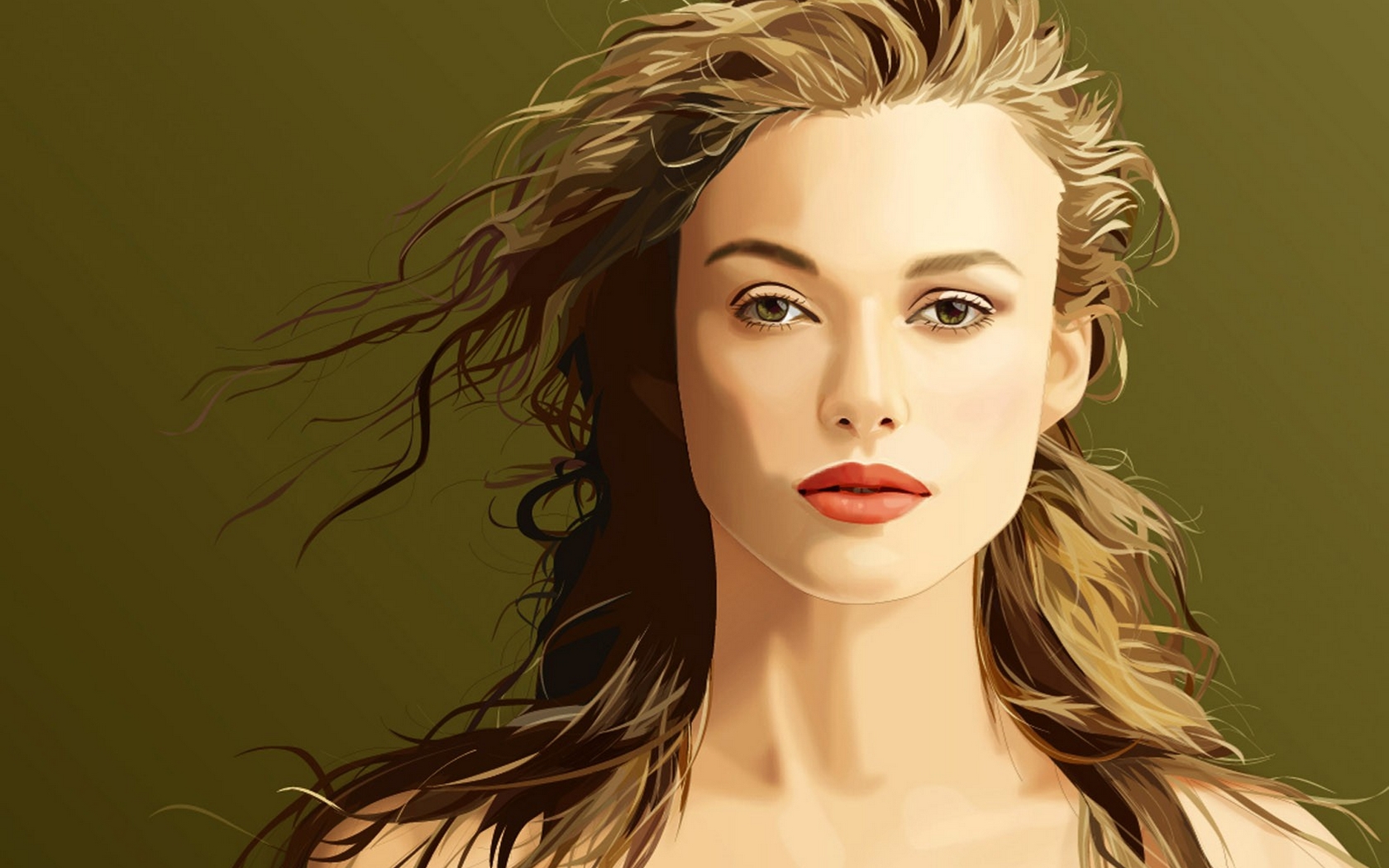 Description: A painting of a woman with long hair and a red lipstick on her lips.