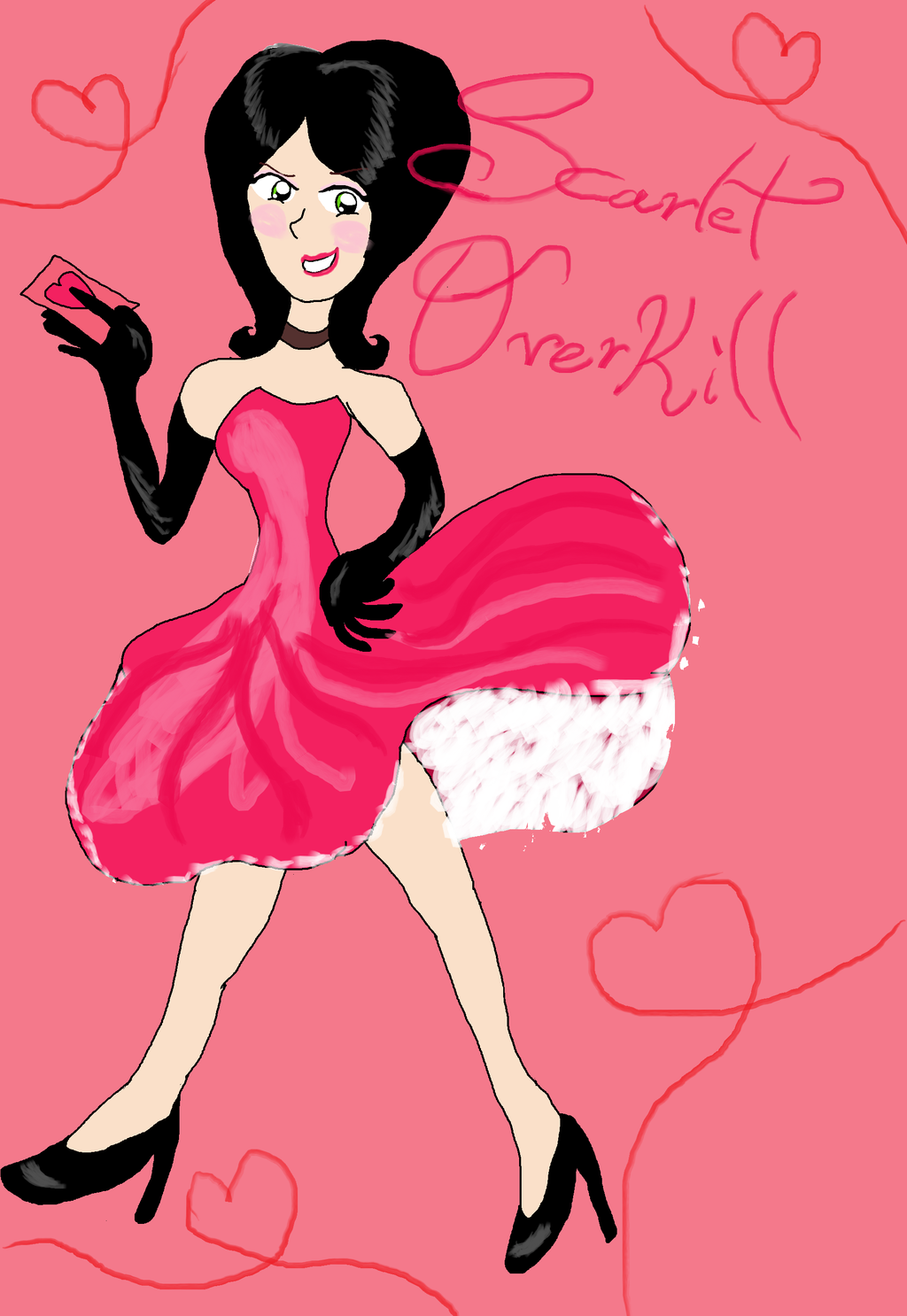 Description: A woman in a pink dress holding a cell phone in her hand and a message reading.