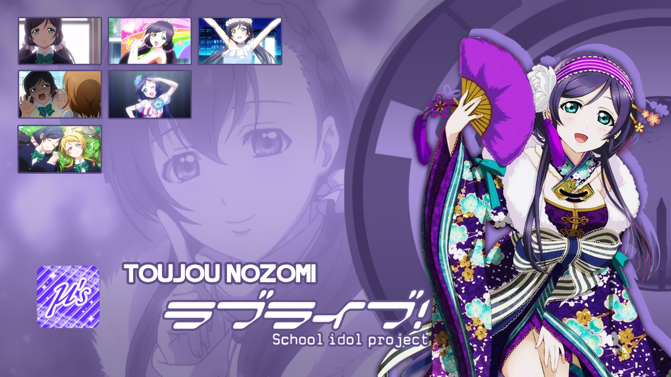 Description: A woman in a purple dress holding a fan and a purple background with anime characters around her and a purple background with a purple background.