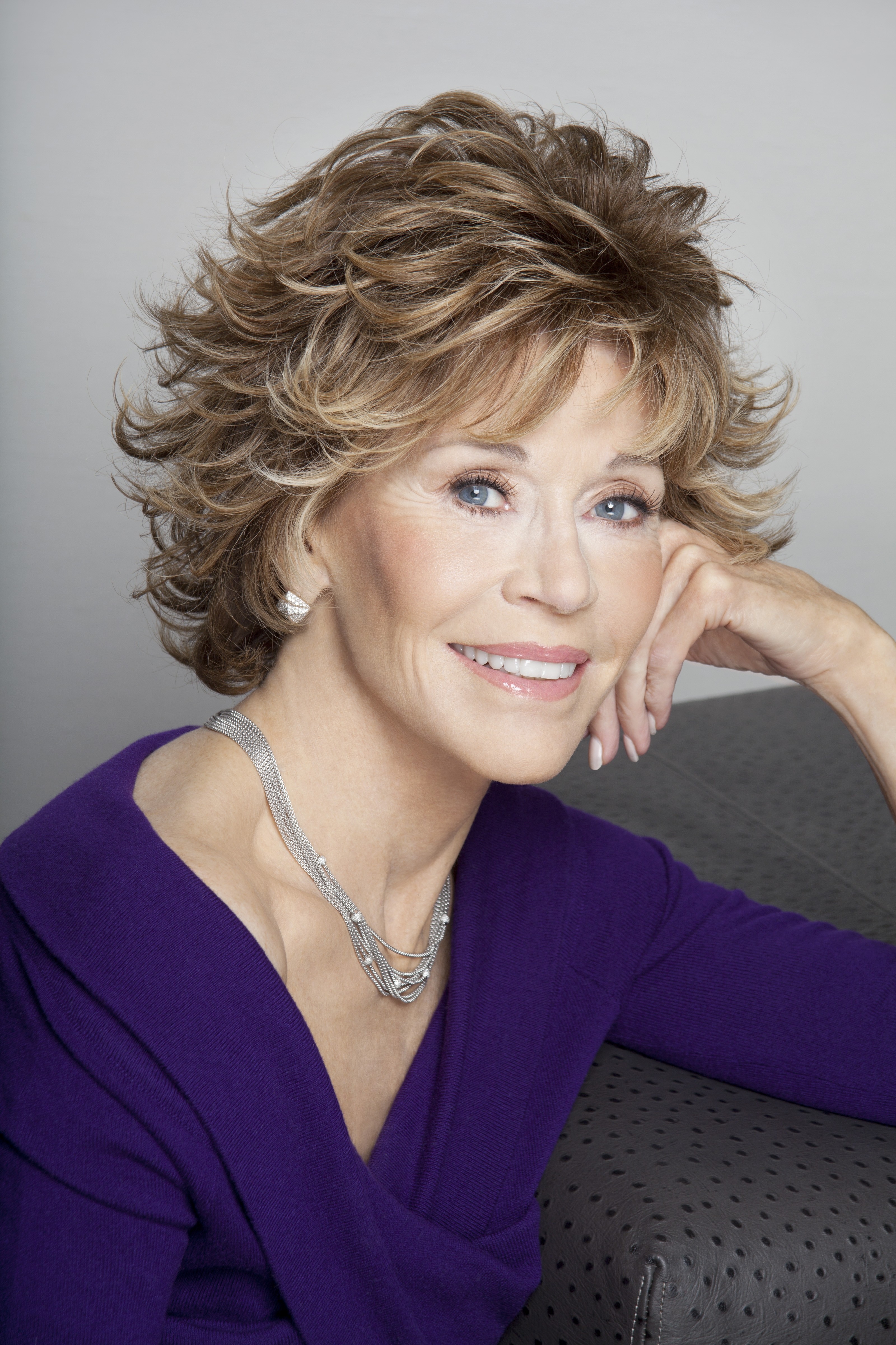 Description: A woman with a purple top sitting on a couch with her hand on her chin and a necklace on her neck.