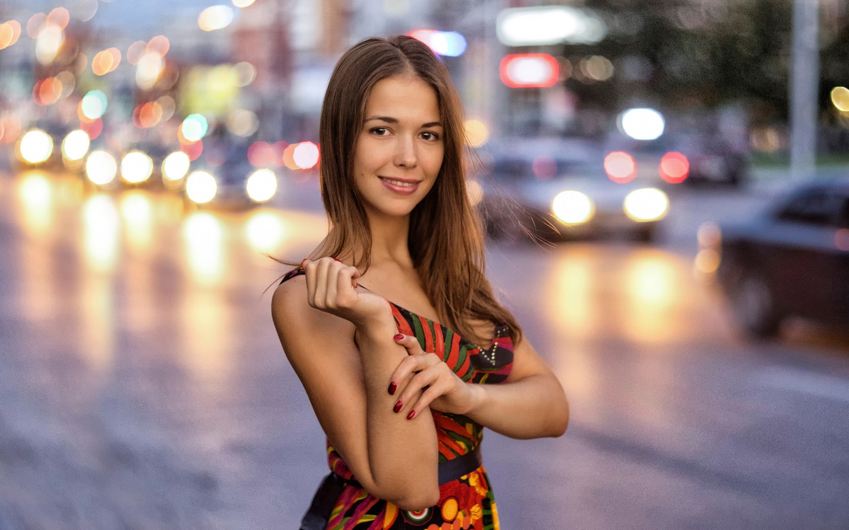 Description: A woman standing on a street corner in the rain with her arms crossed and her hand on her hip.