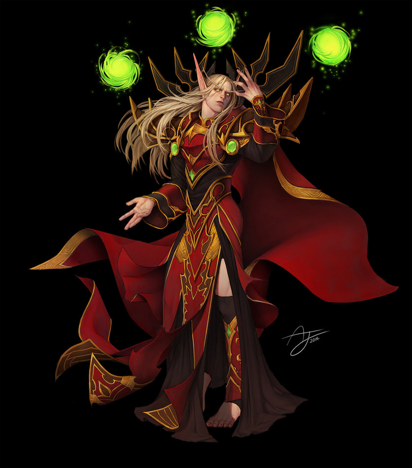 Description: A woman in a red dress with green lights on her head and a red cape on her head.